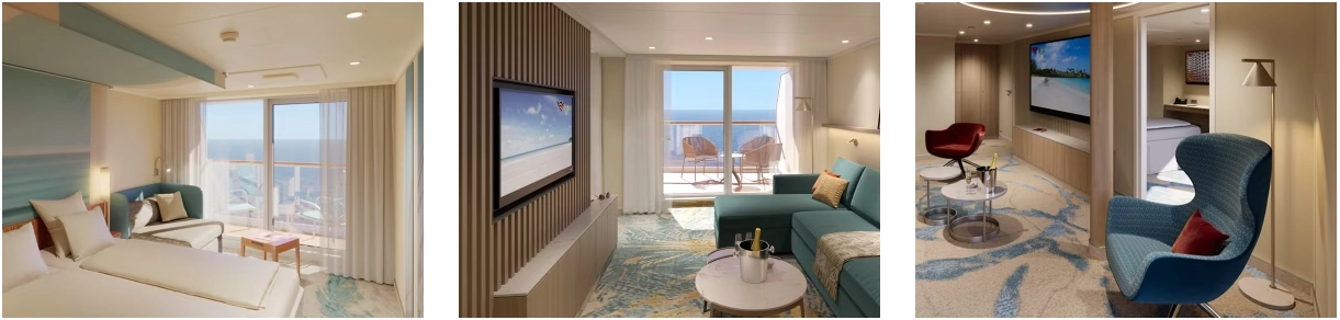 Všetky hosťovské kajuty boli výrazne vylepšené, vrátane nových kobercov, záclon a aktualizovaných farebných schém v jasných, moderných tónoch. Kajuty s balkónmi dostali nové kreslá a pohovky a vybrané kajuty boli prekonfigurované na kapacitu 4 osôb. Na korme bolo postavených šesť nových priestranných apartmánov vhodných pre rodiny so súkromnými terasami, oddelenou obývaciou a spálňovou časťou a ďalšími možnosťami na spanie v obývacej izbe. Niektoré apartmány teraz ponúkajú kapacitu až pre 5 osôb plus možnosť pridať aj detskú postieľku. Hostia apartmánov majú taktiež prístup k exkluzívnym Sky Deck a Rossini Lounge.
