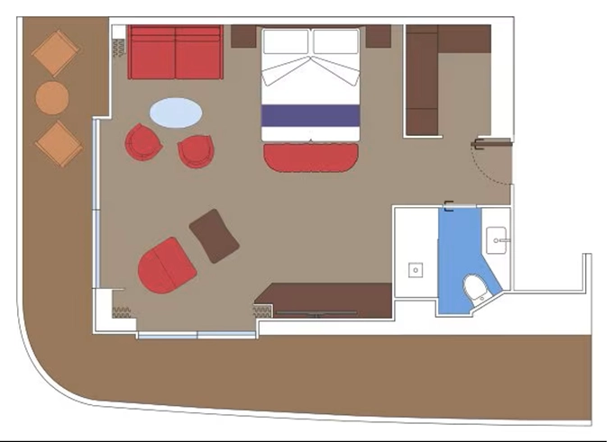 - Ubytovanie v plne vybavenej kajute: vlastná kúpeľňa so sprchou a WC, interaktívna TV, telefón, safe, sušič na vlasy, regulovateľná klimatizácia, minibar (za poplatok). Pripojenie na internet cez Wi-fi (za poplatok)
