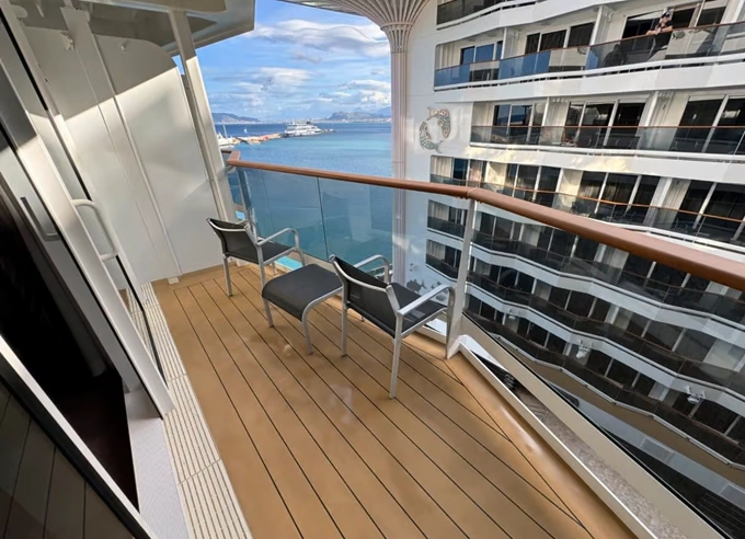 | PV - Kajuta s balkónom Deluxe Promenade & Ocean Fantastica 16 m² + balkón 5 m² (výhľad na Promenádu a na more). 9. až 15. paluba vzadu. Cenový model Fantastica. | 4 198 € 4 198 € za osobu |