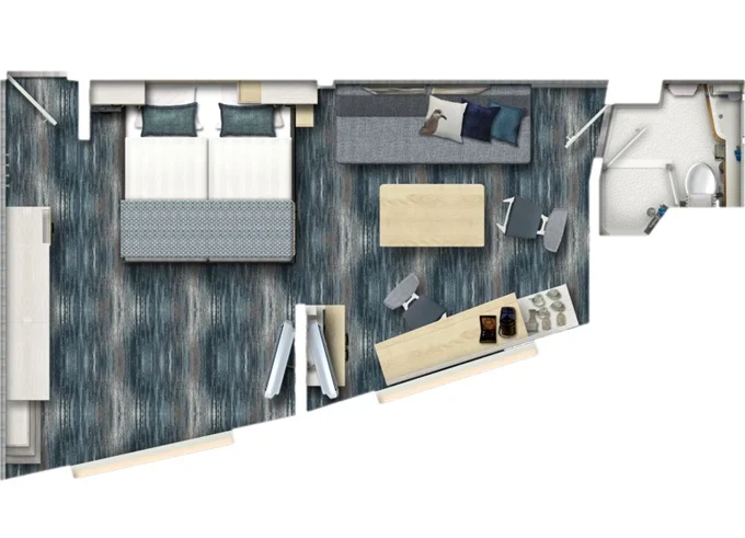| SHZO - Horizont Suite 38-40 m² + balkón 16 m² s ležadlami a hojdacou sieťou. Obývacia časť a oddelená spálňa. 7-8. paluba. Max 4 osoby. Výhody Suite. | 22 638 € 11 319 € za osobu | ||